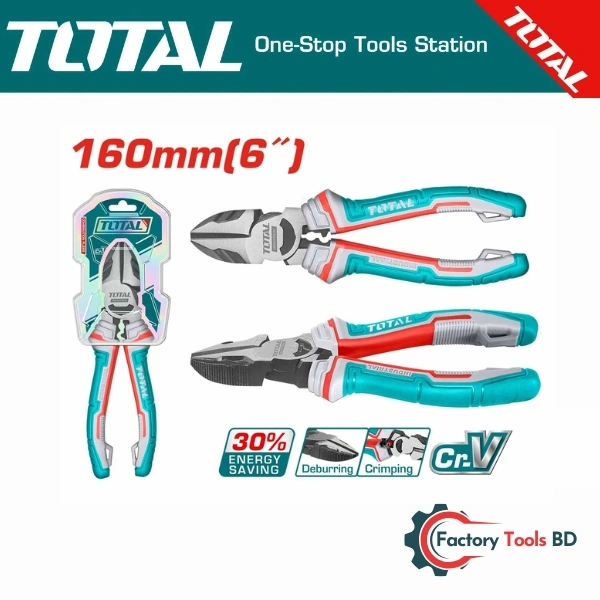 High Leverage Combination Pliers 160mm (6 Inch) / TOTAL THT210606 – CrV Steel, Blue Handle