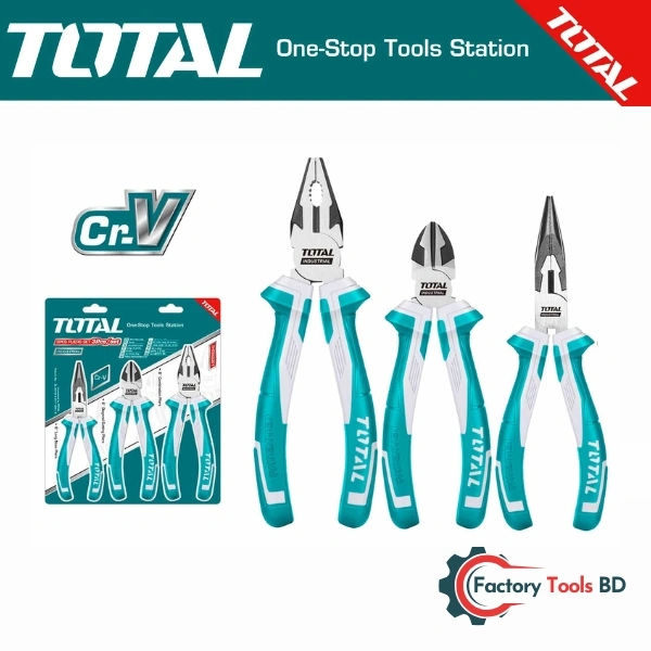 3-Piece Pliers Set – TOTAL THT2K0301 / Cr-V Steel, Industrial Grade