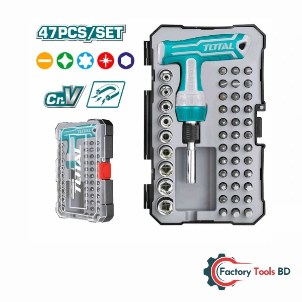 Total 47 Pcs T-Handle Ratchet Wrench Screwdriver & Bit Set | Multi-Function Tool Kit