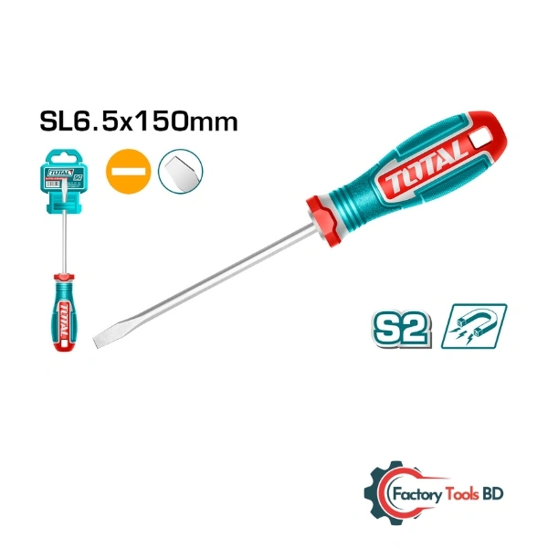 Total Slotted Screwdriver SL6.5 x 150mm – S2 Steel with Magnetic Tip